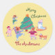 Pegatina Redonda Feliz Navidad Perro Patinaje sobre hielo Pastel Am