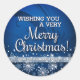 Pegatinas navideñas personalizadas festivas y divertidas con un fondo de degradado azul bonito y una rociada de nieve con el sentimiento "deseándote una Feliz Navidad". Perfecto como etiquetas de regalo, sellos para sobres o etiquetas de tarro para regalos caseros.