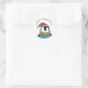 Pegatina Redonda Feliz Navidad. Pingüino lindo. Buey de Santa