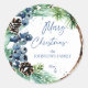 Pegatina Redonda Feliz Navidad pino wreath berries de invierno azul