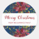 Pegatina Redonda Feliz Navidad Poinsettia Botánica Marina Azul