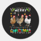 Pegatina Redonda Feliz Navidad Pollo Santa Hat Encendido Navidad Di