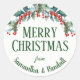 Pegatina Redonda Feliz Navidad, ramas de Holly y tu nombre
