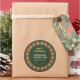Pegatina Redonda Feliz Navidad Rayas Rojas y Verdes Regalo Hecho a