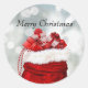 Elegantes regalos rojos en una bolsa roja sobre un brillante fondo bokeh con texto... Feliz Navidad. Puede personalizar fácilmente con su elección de texto.