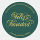 Celebrate the season with this Feliz Navidad round return address sticker, featuring elegant hand-lettered calligraphy in festive gold and green