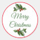 Pegatina Redonda Feliz Navidad Rojo y Holly Verde