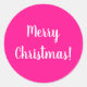 Pegatina Redonda Feliz Navidad, rosa caliente y blanco