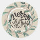 Pegatina Redonda Feliz Navidad Rustic Kraft Wreath de hojas botánic