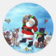 Pegatina Redonda Feliz Navidad Santa Claus con animales