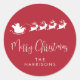 Pegatina Redonda Feliz Navidad Santa Reindeer Rojo
