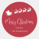 Pegatina Redonda Feliz Navidad Santa Sleigh Red