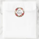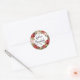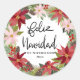 Pegatina Redonda Feliz Navidad Script rojo Poinsettia Wreath Classi