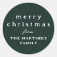 Pegatina Redonda Feliz Navidad simple y rústico fiesta verde oscuro