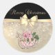 Pegatina Redonda Feliz Navidad, Sleigh Rosa, Copos de nieve, Bow