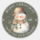Pegatina Redonda Feliz Navidad Snowman con Gorra en verde
