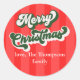 Pegatina Redonda Feliz Navidad Verde Rojo Tipografía caprichosa