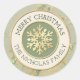 Pegatina Redonda Feliz Navidad Verde Salvia y Oro Copo de Nieve Nom