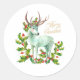 Pegatina Redonda Feliz Navidad Woodland Deer y Holly Berry