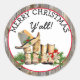 Pegatina Redonda Feliz Navidad y el Rústico Occidental