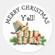 Pegatina Redonda Feliz Navidad y el Rústico Occidental