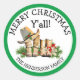 Pegatina Redonda Feliz Navidad y el Rústico Occidental