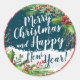 Pegatina Redonda Feliz Navidad y Feliz Año Nuevo Saludos