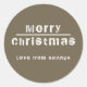 Navidades personalizados modernos pegatinas de vacaciones en diferentes estilos y tamaños. Personalice el pegatina con su texto y nombre. Diseño elegante y sencillo con un texto blanco moderno sobre un fondo gris. Este pegatina coincide con otros artículos de vacaciones de la colección de Navidades de fotografía modernos.
