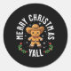 Pegatina Redonda Feliz Navidad Yall Gingerbread Cowboy Howdy West