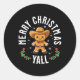 Pegatina Redonda Feliz Navidad Yall Gingerbread Cowboy Occidental