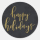 Pegatina Redonda FELIZ Oro VACACIONES Invierno Black Snowflakes