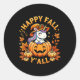 Pegatina Redonda Feliz otoño a todos los unicornios de calabaza de