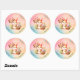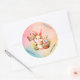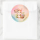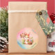 Pegatinas felices de Pascua con un conejo sosteniendo una canasta con flores y huevos de colores