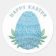 pegatina "Feliz Pascua" con huevo azul para los niños cazadores de huevos o brunch de Pascua.