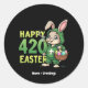 Pegatina Redonda Feliz Pascua Gracioso Diseño Conejo de Pascua