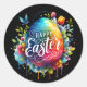 Pegatina Redonda Feliz Pascua: Vibrante Huevo de Pascua