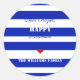 Pegatina Redonda Feliz patrón Hanukkah rayado azul y blanco