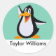 Pegatina Redonda Feliz Personalizado de pingüino con nombre persona