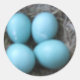 Pegatina Redonda Feliz primavera rota huevos azules en nido, huevos
