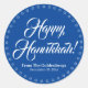 Feliz texto del guión del personalizado Hanukkah Elegant Hanukkah regalo pegatinas de etiquetas de favores. Personalizado texto de guión, nombres y fecha rodeados por un borde hecho de Estrellas de David, Magen David. Texto blanco personalizado sobre fondo azul.