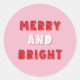 Pegatina Redonda Feliz y brillante, Feliz Navidad, Navidades, rosa