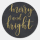 Pegatina Redonda FELIZ Y BRILLANTE invierno de feriado negro copos