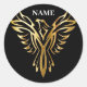 Pegatina Redonda Fénix dorado, elegancia