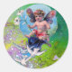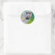 Pegatina Redonda FERIA DE BEBÉ CON DOVAS EN RODILLAS azul rosa