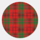 Pegatina Redonda Feriado de Tartán Verde Rojo en vacaciones