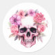 Calavera color de agua rosa con flores, suavidad de elementos florales, un toque de encanto.