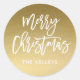 Pegatina Redonda Ferry Christmas Brush Script Gold Personalizado