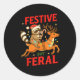 Pegatina Redonda Festive But Feral Funny Christmas Raccoon Riding R