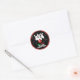 This festive holiday bowling stickers features bowling pins with red glitter and a red bowling ball with snowflakes pattern on a cheerful red plaid background the perfect design to spread seasonal fun and party cheer.