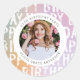 Pegatina Redonda Festividad de cumpleaños con fotos rosa y color pa